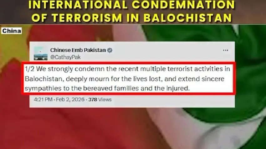 چین کی جانب سے بھی بلوچستان میں حالیہ دہشت گردانہ واقعات کی شدید مذمت کے ساتھ ساتھ قیمتی جانوں کے ضیاع پر گہرے دکھ کا اظہار اور لواحقین سے دلی ہمدردی کا اظہار کیا گیا۔