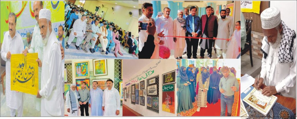 جھنگ میں قومی سطح پہ قرآنی خطاطی نمائش کا اہتمام جناح ہال ڈسٹرکٹ کونسل جھنگکیا گیا زیر صدارت جھنگ کے معروف کتابت کار، خطاط محمد اشرف صابر اور ان کے رفقاء کی کاوش و محنت کی بدولت پہلی بار منعقد ہوئی ہے. نمائش میں ضلع جھنگ سمیت ملک کے دیگر شہروں سے تعلق رکھنے والے مرد، خواتین اور بچوں نے شرکت کی. قرآنی نمائش میں مختلف آرٹسٹس کے فن پاروں کو ہال کی بیرونی دیواروں پہ آوازاں کیا گیا. ملک کے مختلف شہروں لاہور ، فیصل آباد، حافظ آباد، بھکر، چنیوٹ، اسلام آباداوکاڑہ، اور ، خیبر پختونخواہ سے عالمی ایوارڈ یافتہ خطاط خواتین و حضرات کی مختلف قرآنی آیات کی خوبصورت اور منفرد انداز میں بناوٹ ان خطاط کی محنت، کام میں لگ اور قران پاک سے محبت کا عملی ثبوت ہے. تقریب میں شامل آرٹسٹس کے فن پاروں کو خوبصورت فریمنگ میں لگایا گیا، ہاتھ سے لکھ گیا خطِ نستعلیق قرآن پاک بھی دیدہ زیب تھا. تقریب میں شامل تمام آرٹسٹس کو اعزازی شیلڈ، سرٹیفیکیٹ سے نوازا گیا. چیف آرگنائزر محمد اشرف صابر کا کہنا تھا کہ جدید ٹیکنالوجی (کمپیوٹر) کے آنے کے بعد ہینڈ میڈ خطاطی کے کام میں کافی کمی آئی ہے جس سے آرٹسٹس بے روزگار بھی ہوئے ہیں اس لیے خطاط خواتین و حضرات کو اچھا پلیٹ فارم مہیا کیا جائے تاکہ وہ اپنے ٹیلنٹ اجاگر کرنے کے ساتھ ساتھ برسر روزگار بھی ہو سکیں. مزید برآں ان کا کہنا تھا کہ خطاطی کو سکولوں میں پہلی جماعت سے لازمی مضمون کے طور پہ شامل کیا جائے تا کہ ہماری آنے والی نسلیں اس کام سے جُڑ جائیں تا کہ یہ فن ناپید نہ ہو. اشرف صابر اور دیگر منتظمین کا کہنا تھا کہ ایسی نمائشیں ہر سال ہونی چاہیے تاکہ عوام میں خطاطی کے شعور کے ساتھ ساتھ ذہنی و روحانی سکون بھی میسر آسکے. حاضرین نمائش نے جھنگ میں ہونے والی اس قرآنی خطاطی نمائش کو سراہاتے ہوئے کہا کہ اس قسم کی نمائشیں ہر سال منعقد ہونی چاہیے تاکہ آنے والی نسلیں اس سے فائدہ اٹھا سکیں اور یہ علم و قلم کی طاقت مزید پھیلتی پھولتی رہے