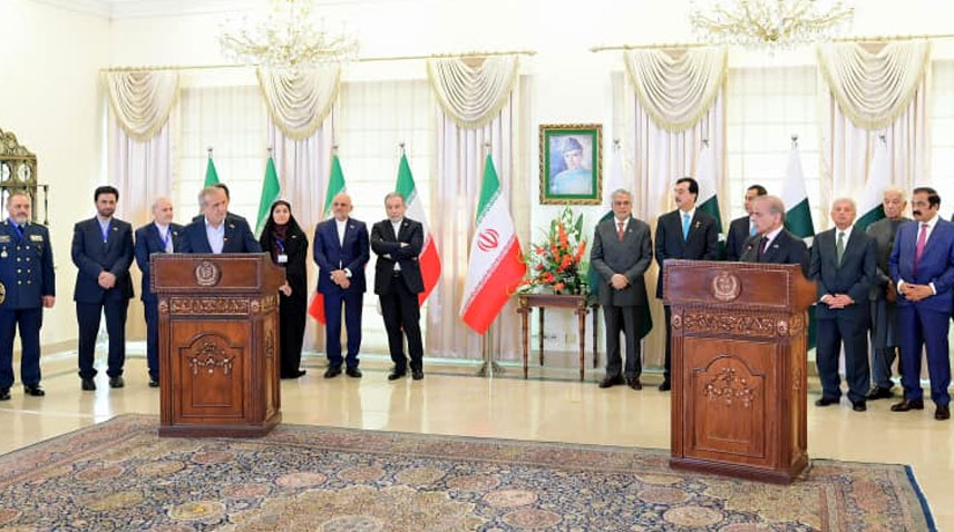 وزیراعظم محمد شہبازشریف نے کہا ہے کہ پاکستان اور ایران نے دوطرفہ تجارتی حجم دس ارب ڈالرز تک بڑھانے پراتفاق کیا ہے۔ وزیراعظم نے آج (اتوار) اسلام آباد میں ایران کے صدر ڈاکٹر مسعود پزشکیان کے ہمراہ مشترکہ پریس کانفرنس سے خطاب کرتے ہوئے کہا کہ فریقین نے دوطرفہ مذہبی اور ثقافتی روابط کو مزید