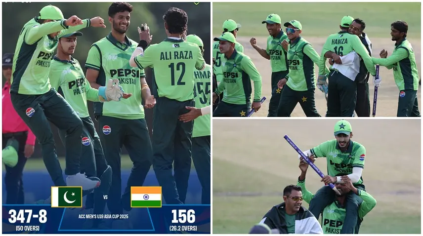پاکستان نے ایشیا کپ انڈر 19 کا ٹائٹل اپنے نام کرلیا،بھارت کو 191 رنز سے ہرا کر ٹورنامنٹ جیت لیا