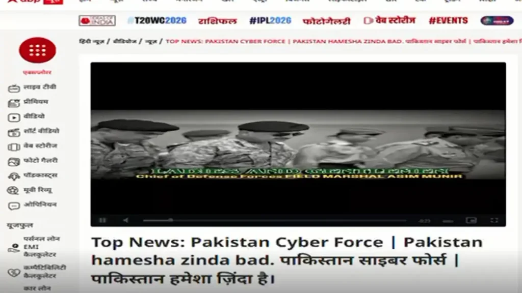 بھارتی چینل اے بی پی نیوز پر پاکستانی فوج کا مواد نشر ہونا شروع ہو گیا۔