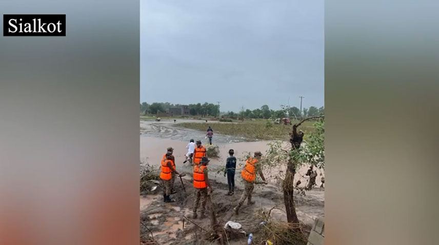 پاک فوج کے دستے سیالکوٹ ،نارروال ،ظفروال، وزیرآباد سمیت مختلف علاقوں میں امدادی کارروائیوں میں مصروف عمل ہیں۔
